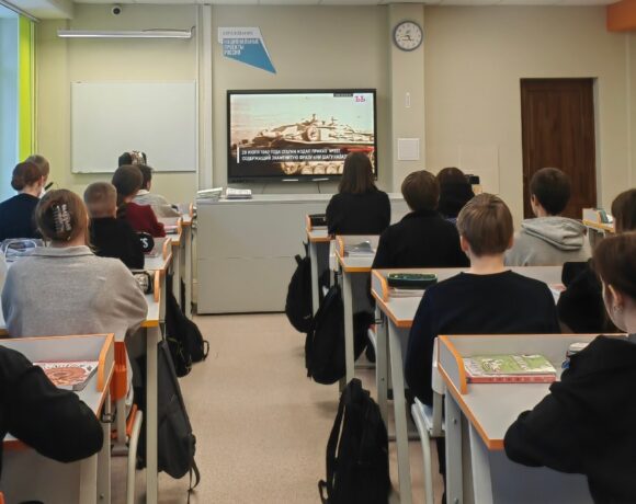 Для учеников 5‑9 классов показали фрагменты художественно-документальной киноленты, рассказывающей о ключевых событиях сражения.
