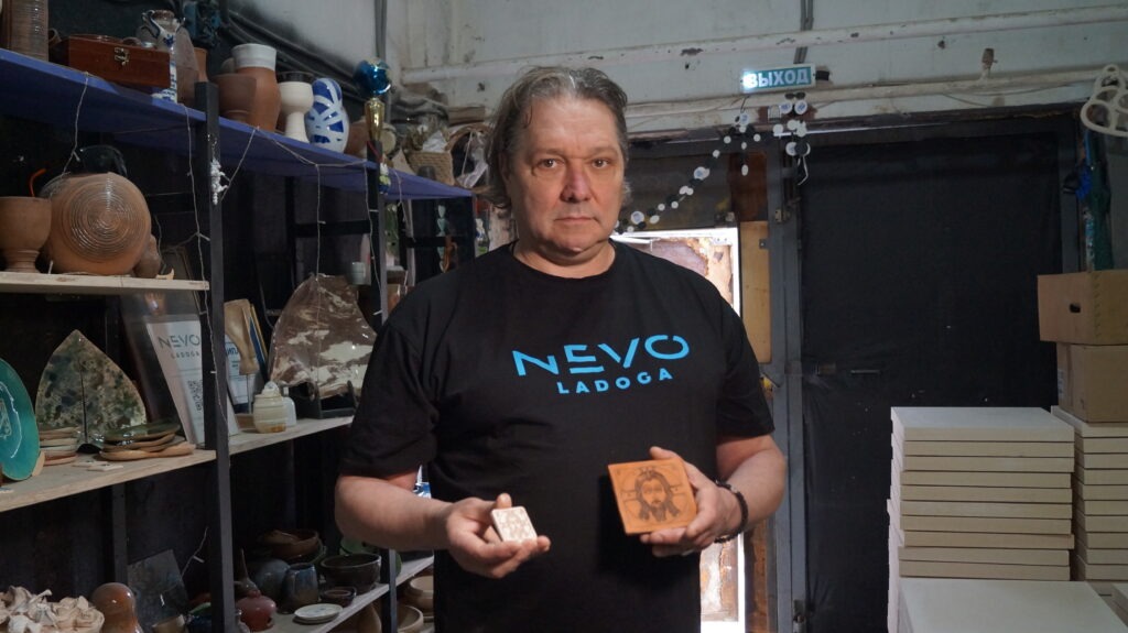 — Это Спас Нерукотворный, образ с новгородской иконы XII века, — поясняет мастер-керамист Михаил Арпишкин. — Мы начали их делать по благословению бывшего настоятеля Староладожского Никольского мужского монастыря архимандрита Варфоломея (Чупова). Наши образа имеют весомое преимущество перед деревянными —не боятся ни огня, ни грязи, поэтому их можно использовать в любое время года и при любой погоде. Многие бойцы берут их в окопы. Мы постоянно получаем благодарные отзывы!