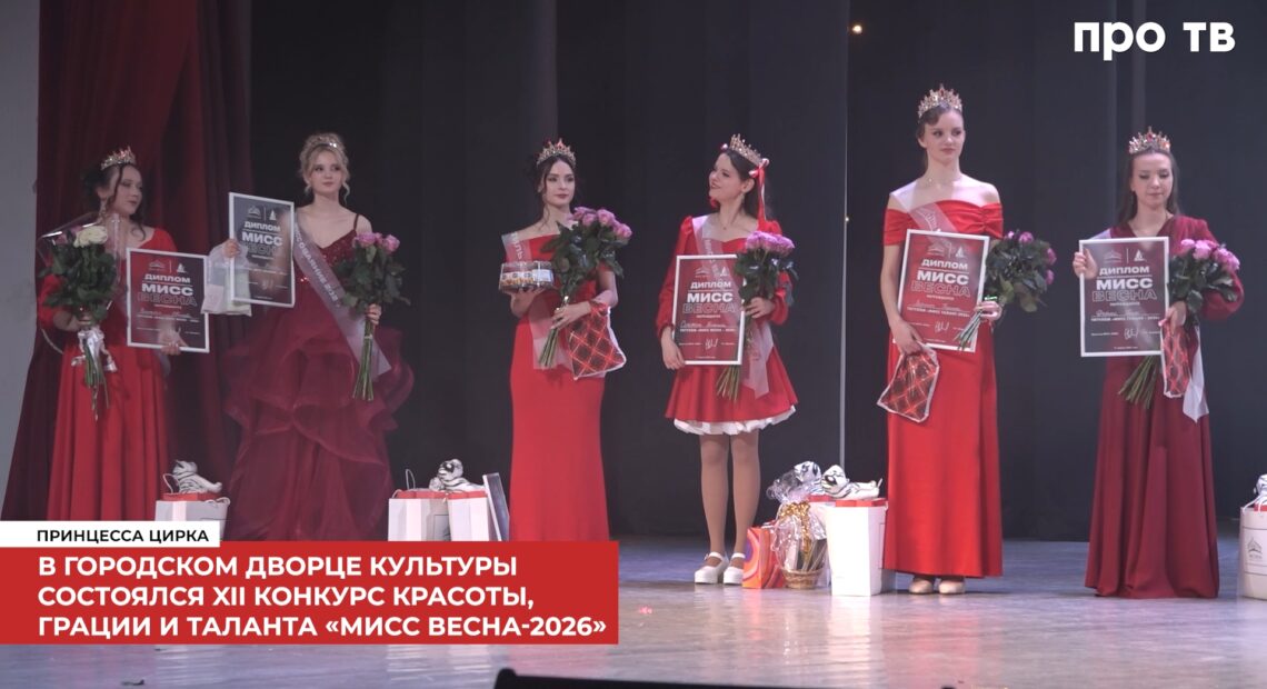 Принцесса цирка: в городском Дворце культуры состоялся XII конкурс красоты, грации и таланта «Мисс Весна-2026»На один вечер сцена городского Дворца культуры превратилась в настоящую цирковую арену. Конкурсантки Дарина Бреньо, Виктория Иванова, Вероника Борисюк, Дарина Рычкова, Серафима Калинина и Владислава Доценко демонстрировали свои таланты через цирковые образы. Какие